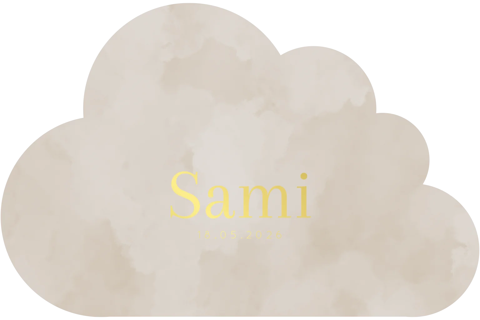 Een dromerig geboortekaartje in zachte beige tinten, vormgegeven als wolk en met een subtiele waterverf achtergrond. Perfect voor een rustige en warme aankondiging van jullie kleintje. Sami