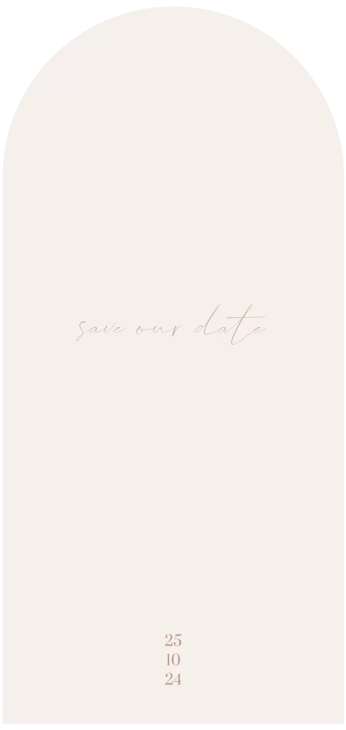 Laat je gasten weten dat ze een belangrijk deel uitmaken van jouw speciale dag met onze elegante Save the Date kaart in boogvorm. Met een verfijnde beige kleur en een minimalistisch ontwerp, straalt deze kaart rust en eenvoud uit. De kaart is perfect voor stellen die op zoek zijn naar een stijlvolle en klassieke uitnodiging voor hun bruiloft. Onze webshop biedt je de mogelijkheid om het ontwerp aan te passen aan jouw persoonlijke smaak en voorkeuren, zodat je je eigen unieke Save the Date kaart kunt creëren. Bestel vandaag nog en maak een onuitwisbare indruk op je gasten.