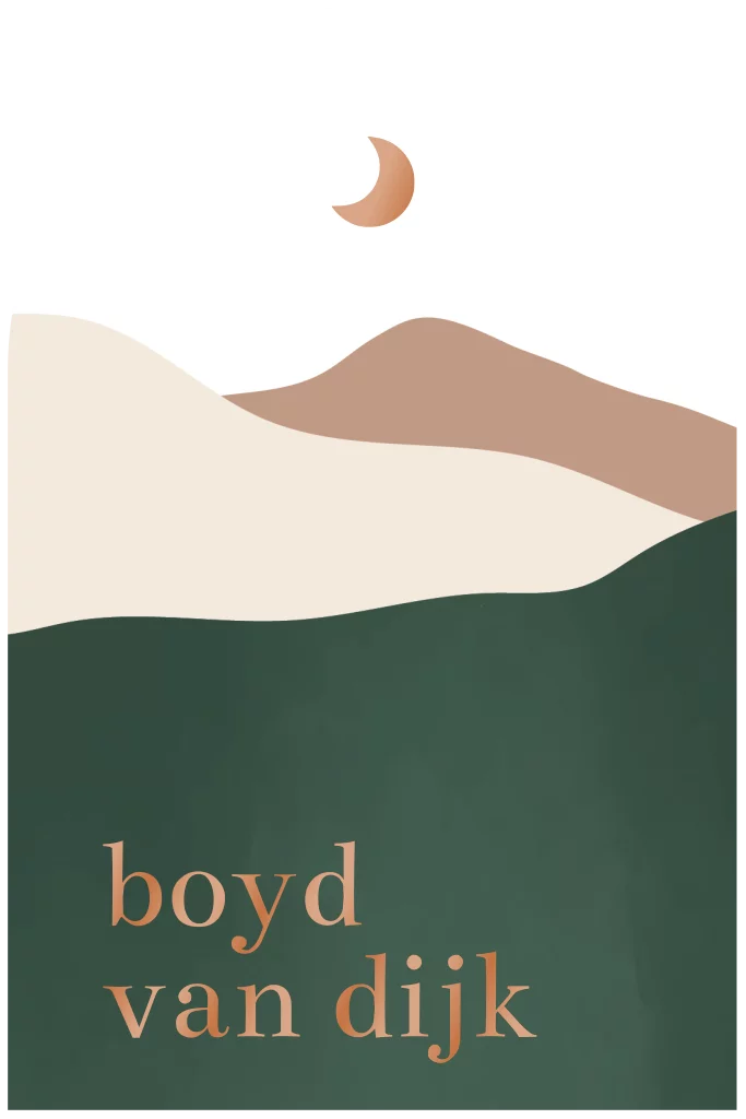 Dit geboortekaartje is helemaal volgens de laatste trends. Want wie wil nou geen geboortekaartje in deze mooie boogvorm? Ook maantjes zijn niet meer weg te denken uit onze collectie. Dit kaartje is mooi afgewerkt met koperfolie. Je past de kleuren en lettertype heel eenvoudig aan in onze eenvoudige editor. Zo wordt jouw kaartje helemaal eigen. Boyd