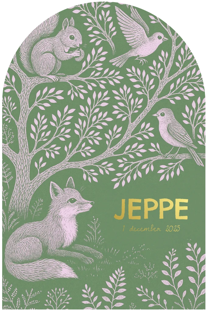Een lief geboortekaartje met natuur en dieren. Personaliseer naar wens in onze online editor. Jeppe