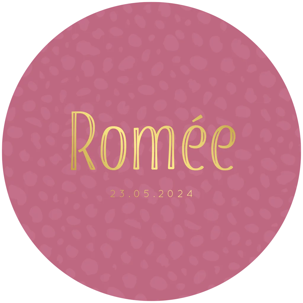Dit moderne geboortekaartje is uitgesneden in een ronde vorm. Een roze geboortekaartje voor meisjes met een creatieve print op de achtergrond en de naam in goudfolie. De achtergrond, het lettertype en de kleuren zijn volledig naar wens aan te passen. Heb je hulp nodig bij het ontwerpen van jouw ideale kaartje? Stuur gerust een berichtje! Romée