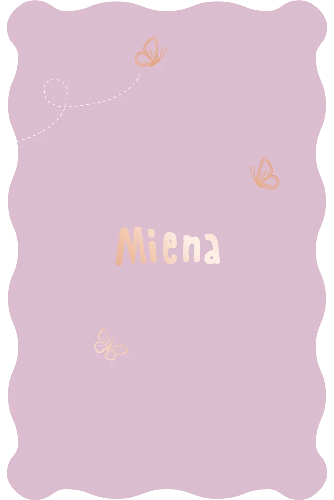 Een zachtroze kaartje met een sierlijke golfrand en fladderende vlindertjes. Zoet, vrolijk en dromerig. Miena