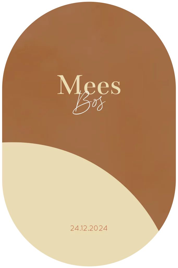 Ovaal geboortekaartje met organische vorm - bruin met beige
