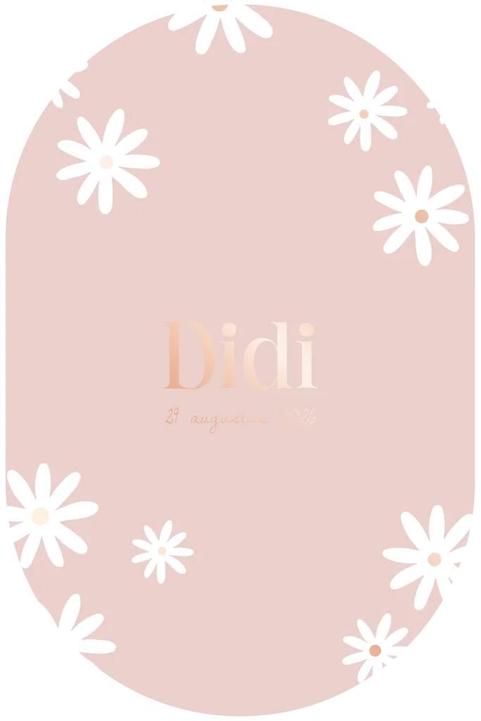 Een lief ovaal geboortekaartje met bloemetjes. Zacht, vrolijk en een beetje anders dan anders. Didi
