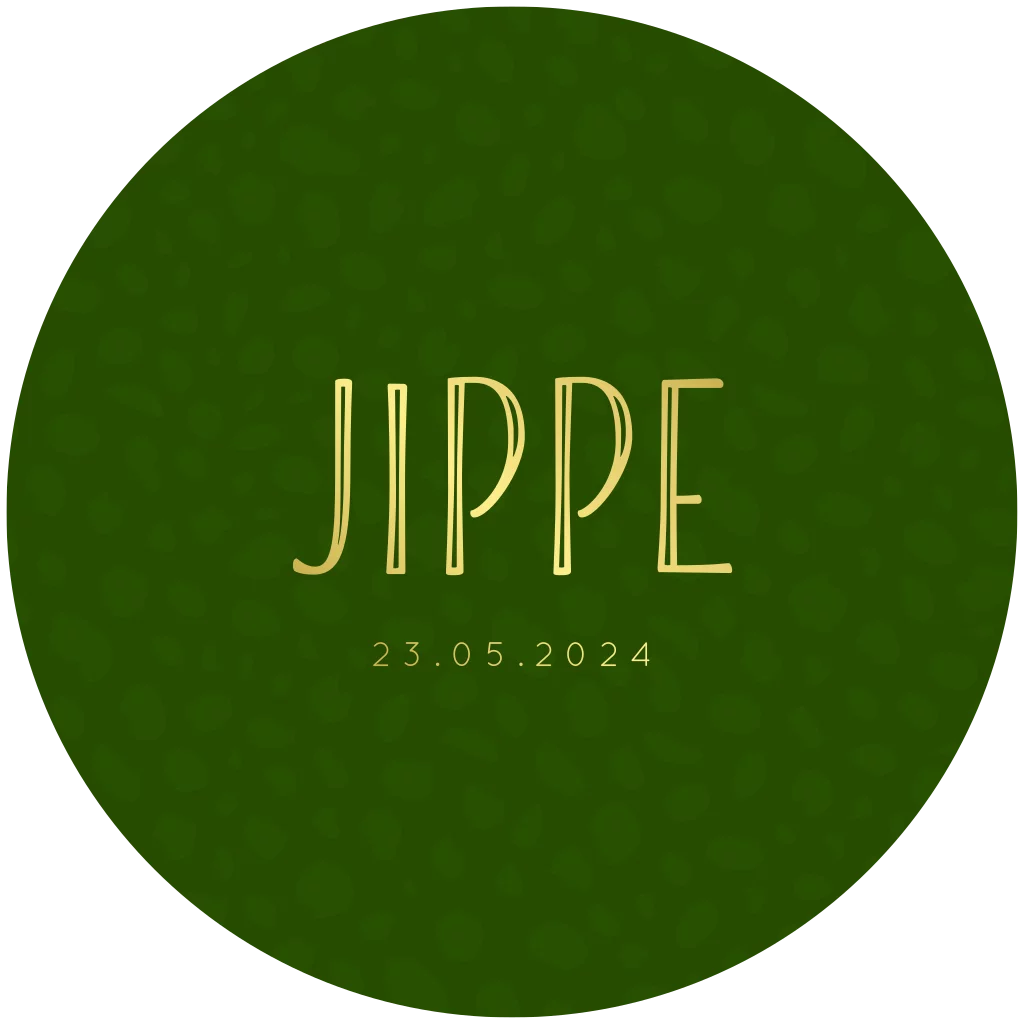 Rond geboortekaartje met goudfolie - groen met dierenprint