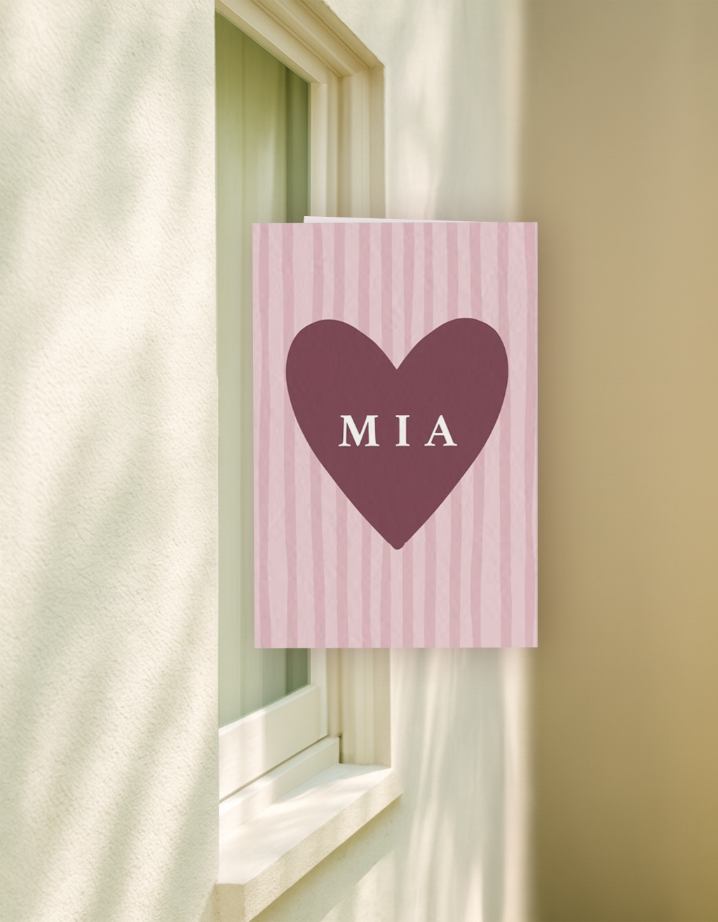 Lief roze raambord met hart en strepen, personaliseer het ontwerp eenvoudig in onze online editor.