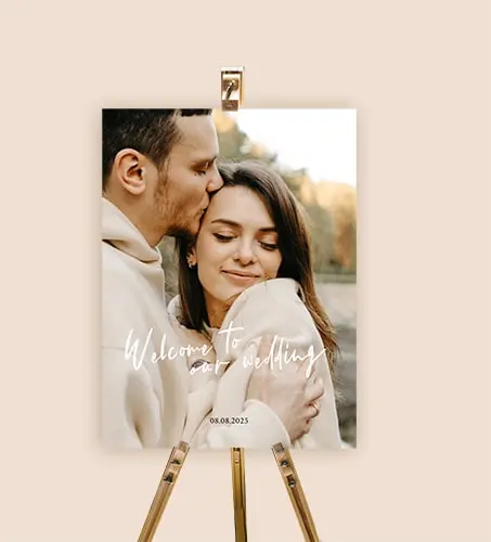 Maak jouw bruiloft onvergetelijk met ons persoonlijke welkomstbord met foto. Dit welkomstbord is de perfecte manier om jouw gasten te begroeten en hen te laten zien hoe speciaal deze dag voor jou is. Het welkomstbord heeft een elegante uitstraling en is gemaakt van hoogwaardig materiaal. Het wordt gepersonaliseerd met een foto van het bruidspaar, waardoor het welkomstbord nog persoonlijker wordt. Het welkomstbord kan op verschillende manieren worden opgehangen en is een prachtige aanvulling op de ceremonie of receptie. Bestel vandaag nog jouw persoonlijke welkomstbord met foto en geef jouw bruiloft een extra persoonlijke touch.
