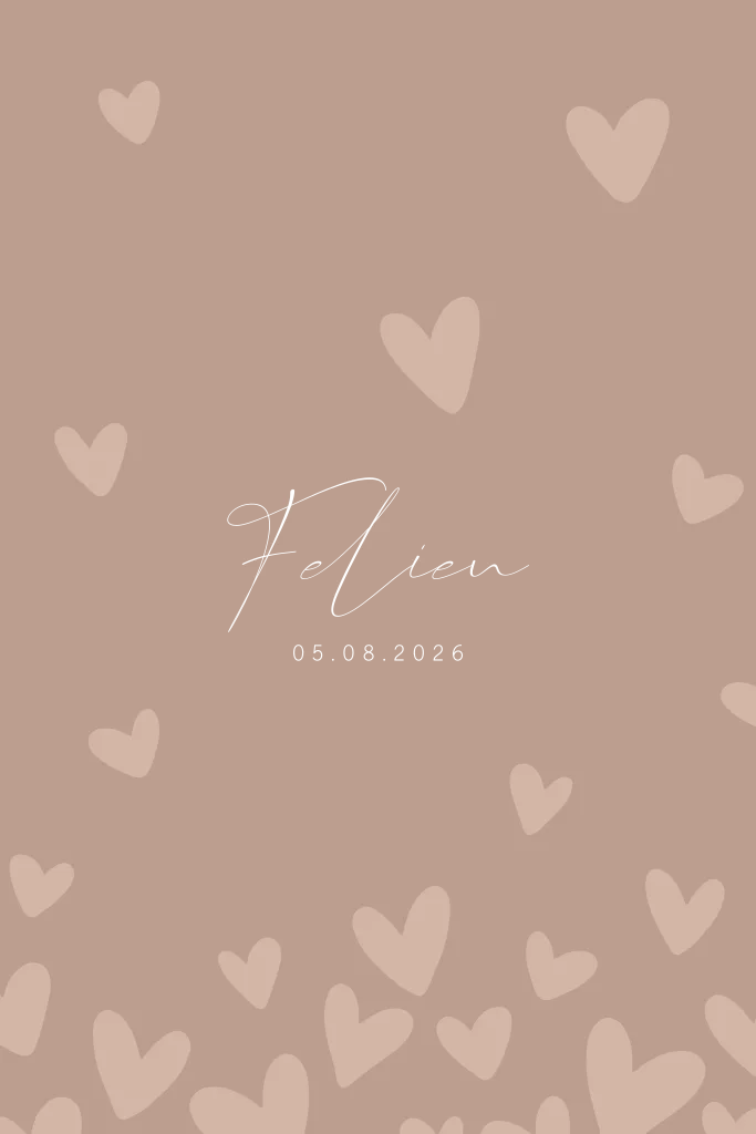 Een zacht beige kaartje met een regen van kleine hartjes. Eenvoudig, lief en warm. Felien