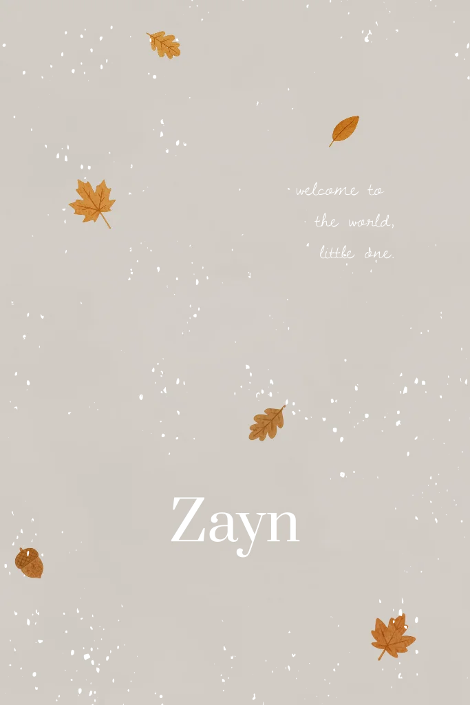 Een herfstig geboortekaartje met gouden blaadjes. Personaliseer het ontwerp eenvoudig in onze online editor. Zayn
