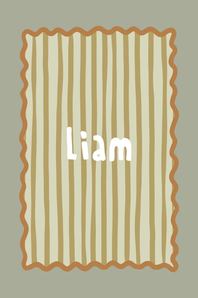Stoer kaartje met groene strepen en een bruine golfrand. Fris en een tikkeltje eigenwijs. Liam