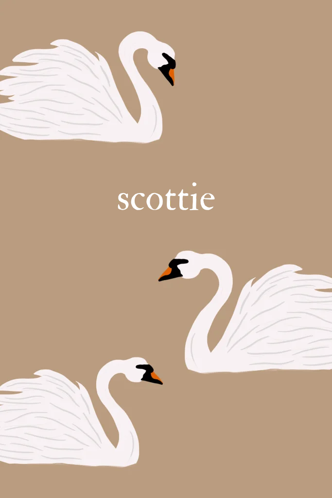 Dit charmante geboortekaartje in bruin met elegante zwanen straalt rust en verfijning uit. Het ideale ontwerp voor een klassieke en natuurlijke geboorteaankondiging. Personaliseer het kaartje met de naam van je baby voor een unieke en betekenisvolle aankondiging. Scottie