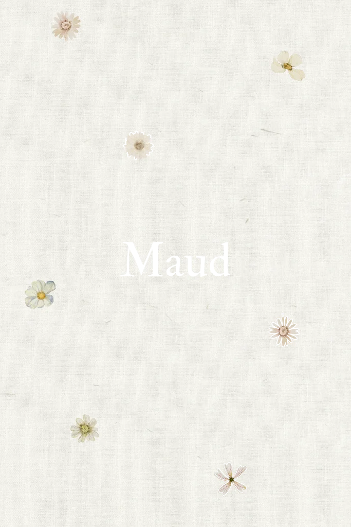 Lief geboortekaartje met een rustige linnen achtergrond, schattige bloemetjes en glinsterende goudfolie accenten. Natuurlijk, warm en een beetje chic. Maud