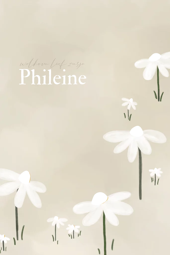Hoe lief is dit beige geboortekaartje met bloemenveld? De kleuren en het lettertype zijn volledig naar wens aan te passen. Hulp nodig? Stuur gerust een berichtje. Phileine