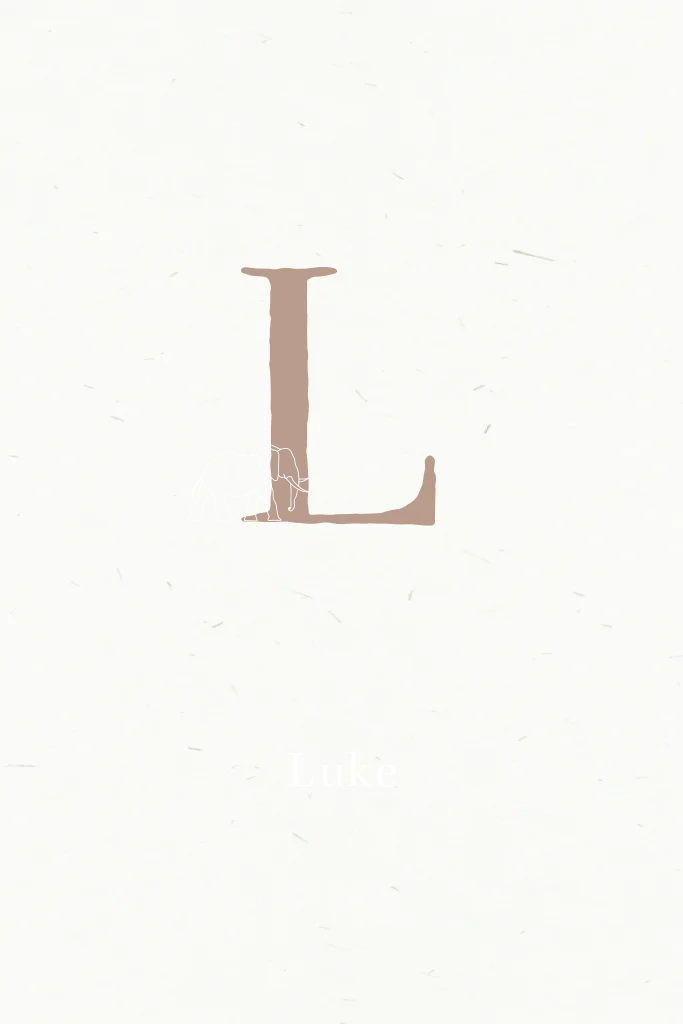 Hoe mooi is dit minimalistische geboortekaartje met letter en olifant in goudfolie? Dit kaartje is zowel voor jongens als voor meisjes