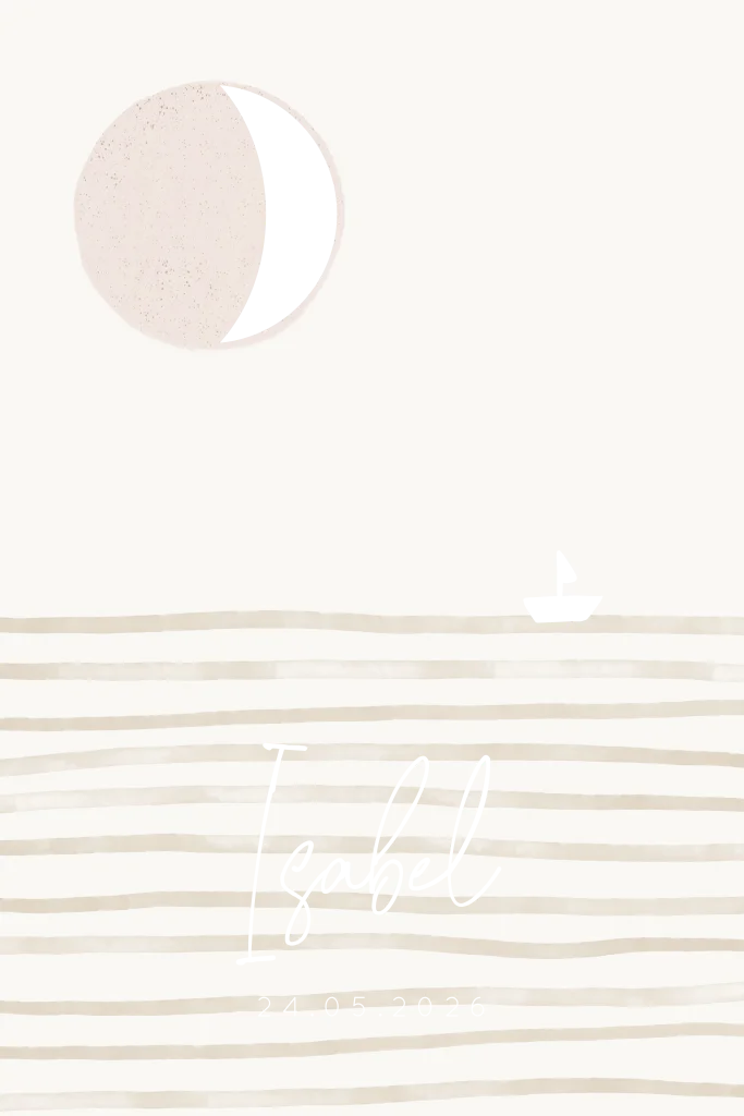 Geboortekaartje met zee, bootje en maanstand met goudfolie - beige