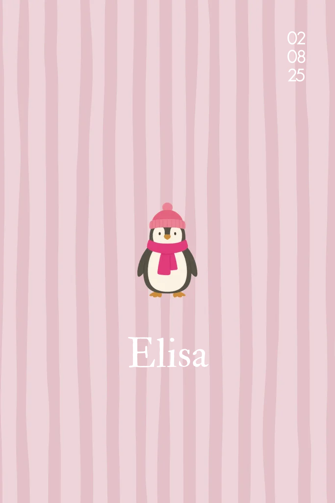 Schattig winterkaartje met een pinguin in roze muts en sjaal. Warm, gezellig en superlief. Elisa