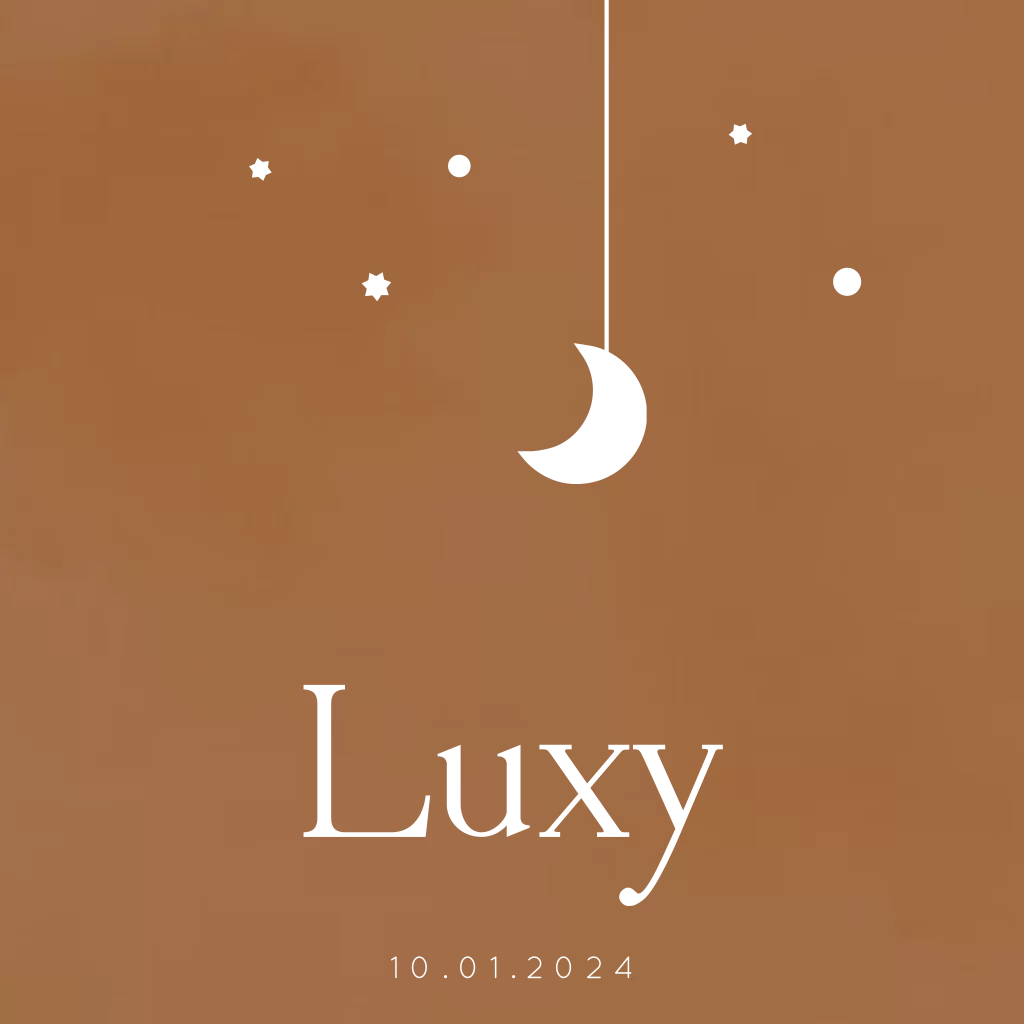 Kondig de geboorte van jullie kleintje aan met dit prachtige kaartje. Het kaartje heeft een donkerbruine achtergrond waardoor de koperfolie mooi naar voren komt. De achtergrond, het lettertype en de kleuren zijn ook volledig naar wens aan te passen. Heb je hulp nodig bij het ontwerpen van jouw ideale kaartje? Stuur gerust een berichtje! Luxy