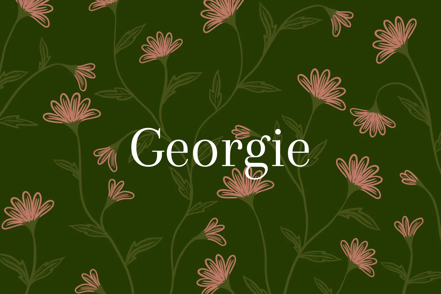 Een elegant groen geboortekaartje met een verfijnd bloemenpatroon en de naam in luxe goudfolie. De perfecte combinatie van natuurlijk en chique voor een stijlvolle aankondiging. Georgie