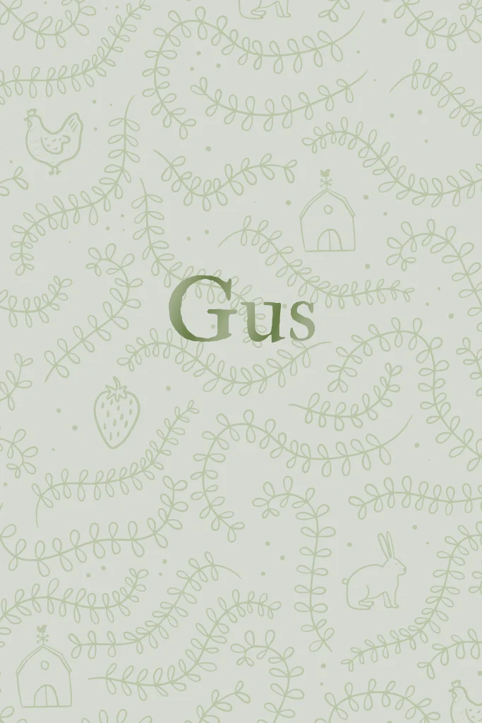 Dit schattige geboortekaartje in lichtgroen heeft speelse boerderij doodles, perfect voor een rustieke en vrolijke aankondiging. Maak het kaartje persoonlijk met de naam van je baby. Gus