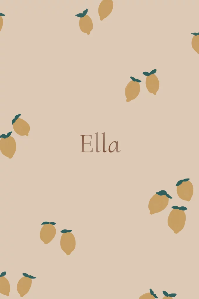 Dit lieve geboortekaartje straalt vrolijkheid uit met zijn schattige citroenen en glanzende foliedruk. De citroenen voegen een speels en verfrissend element toe aan het ontwerp, terwijl de folieaccenten een subtiele touch van elegantie geven. Dit kaartje is perfect om de komst van jullie kleintje aan te kondigen op een lieflijke en unieke manier. Het is een ware blikvanger en zal zeker een glimlach toveren op het gezicht van vrienden en familie. Ella
