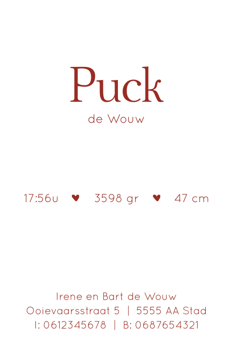 De achtergrond, het lettertype en de kleuren zijn volledig naar wens aan te passen. Heb je hulp nodig bij het ontwerpen van jouw ideale kaartje? Stuur gerust een berichtje! Puck
