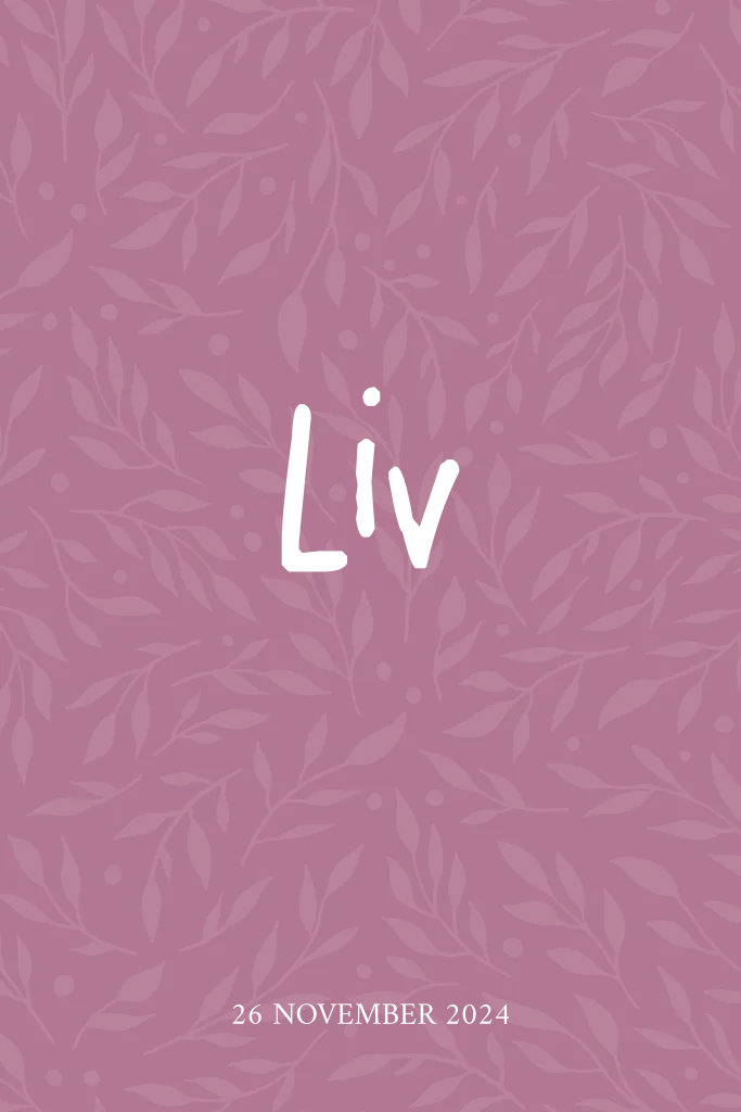 Dit romantische roze geboortekaartje heeft een subtiel takkenpatroon en verfijnde rosegouden details. De perfecte balans tussen natuurlijk en chic voor een stijlvolle en warme geboorteaankondiging. Liv