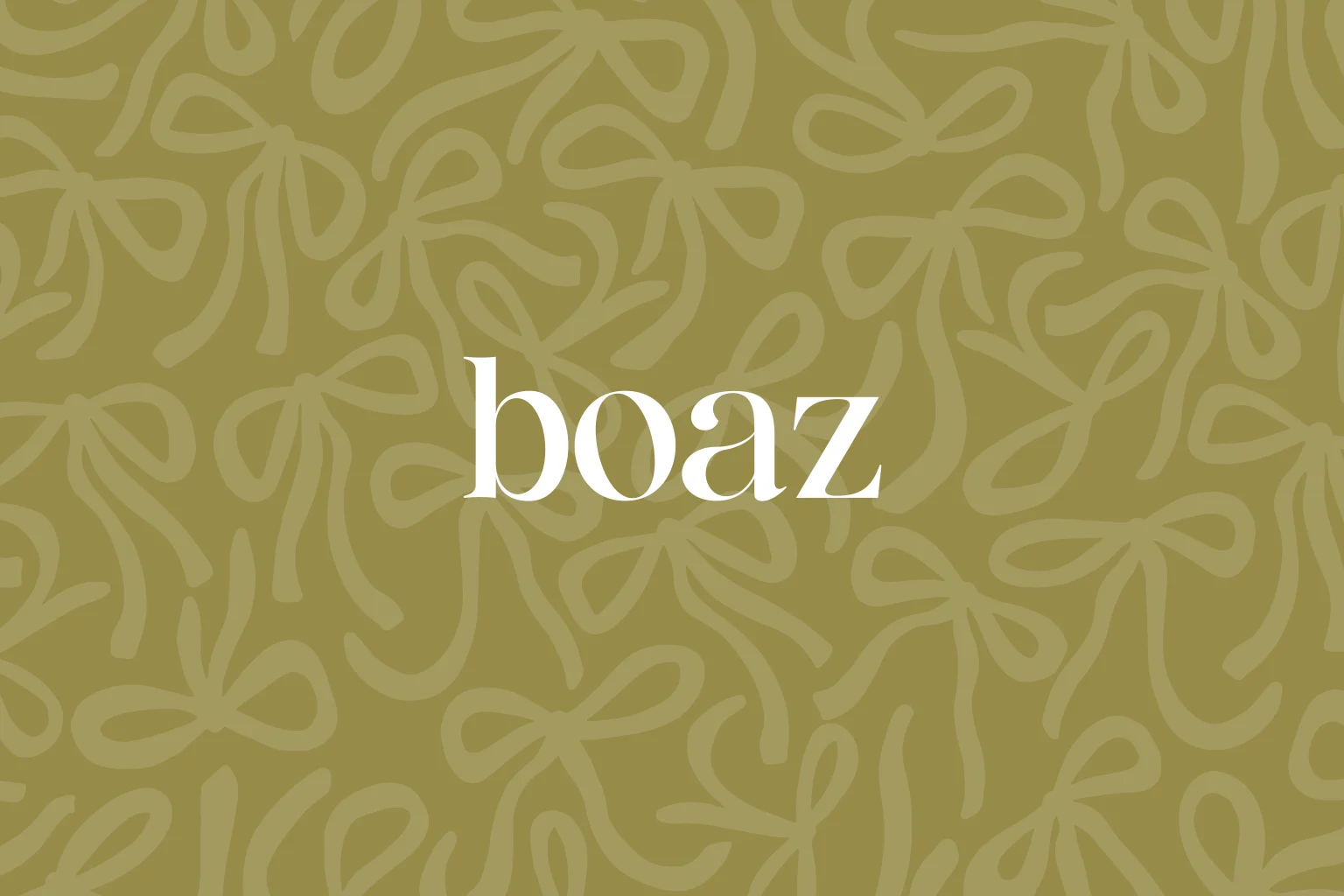 Fris groen geboortekaartje in liggend formaat met een achtergrond vol kleine strikjes. Speels en lief. Boaz