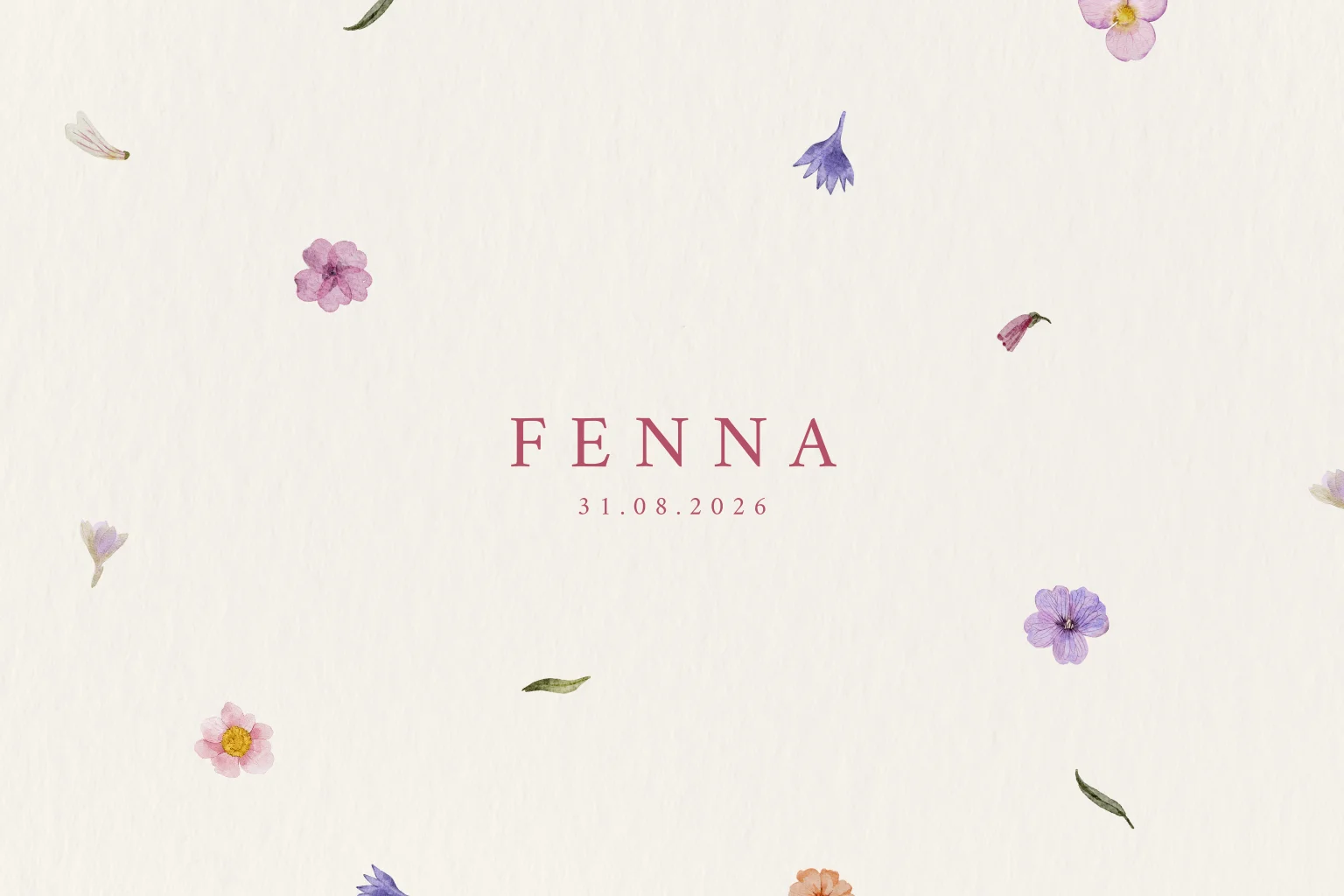 Een stijlvol geboortekaartje in liggend formaat, met een natuurlijk boeket van droogbloemen en blaadjes. Een rustige en elegante manier om jullie kindje aan te kondigen. Fenna