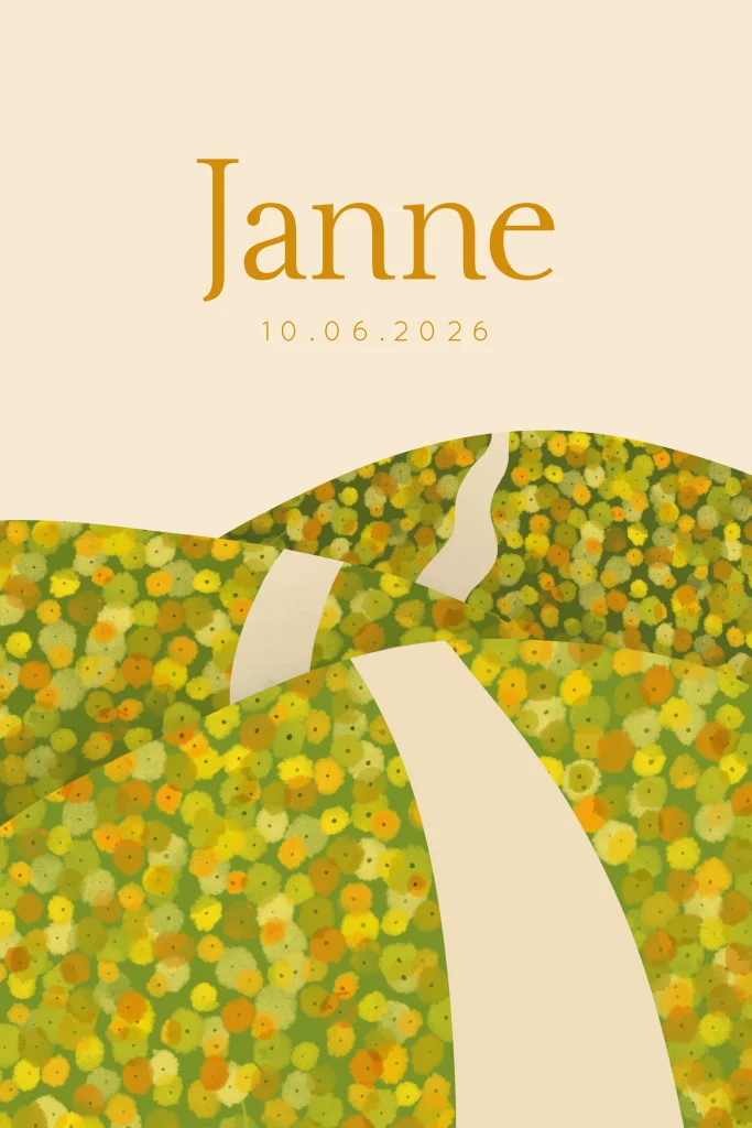 Dit kaartje met bloemenweide in de bergen is toch prachtig? Pas ‘m eenvoudig aan in onze digitale editor. Wil je andere kleuren? Stuur gerust een berichtje. Janne