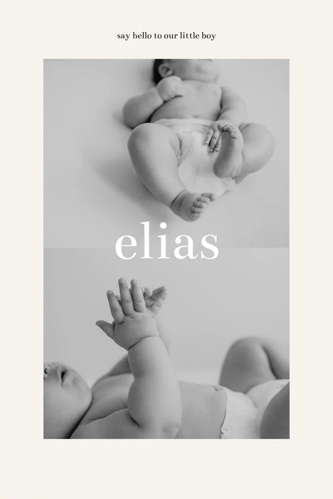 Geboortekaartje met twee foto's in minimalistische stijl