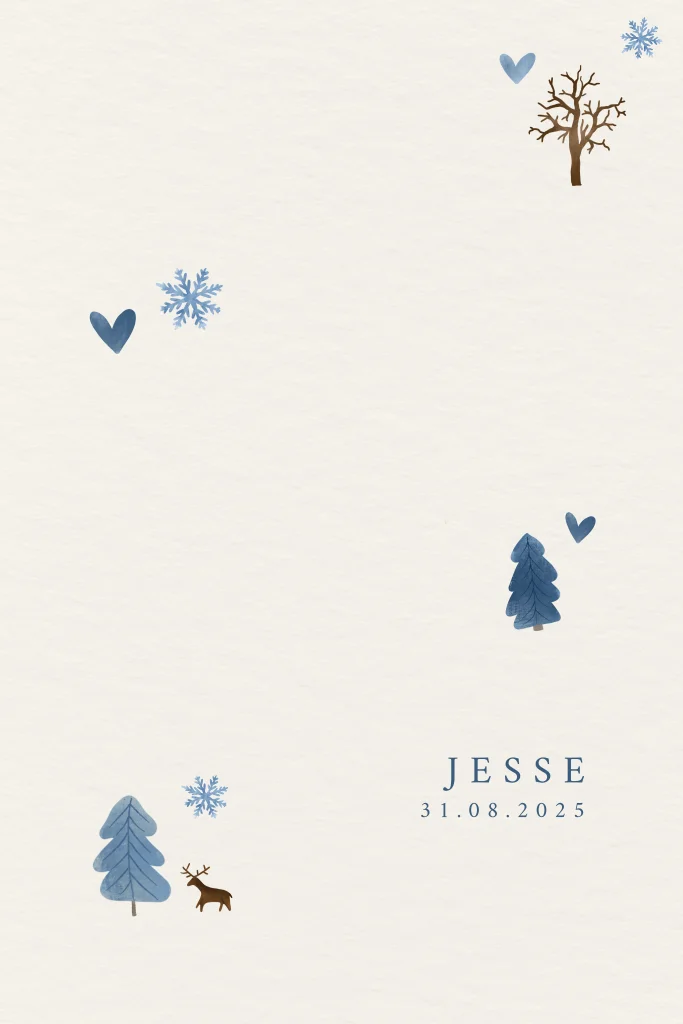 Minimalistisch geboortekaartje met winterillustraties