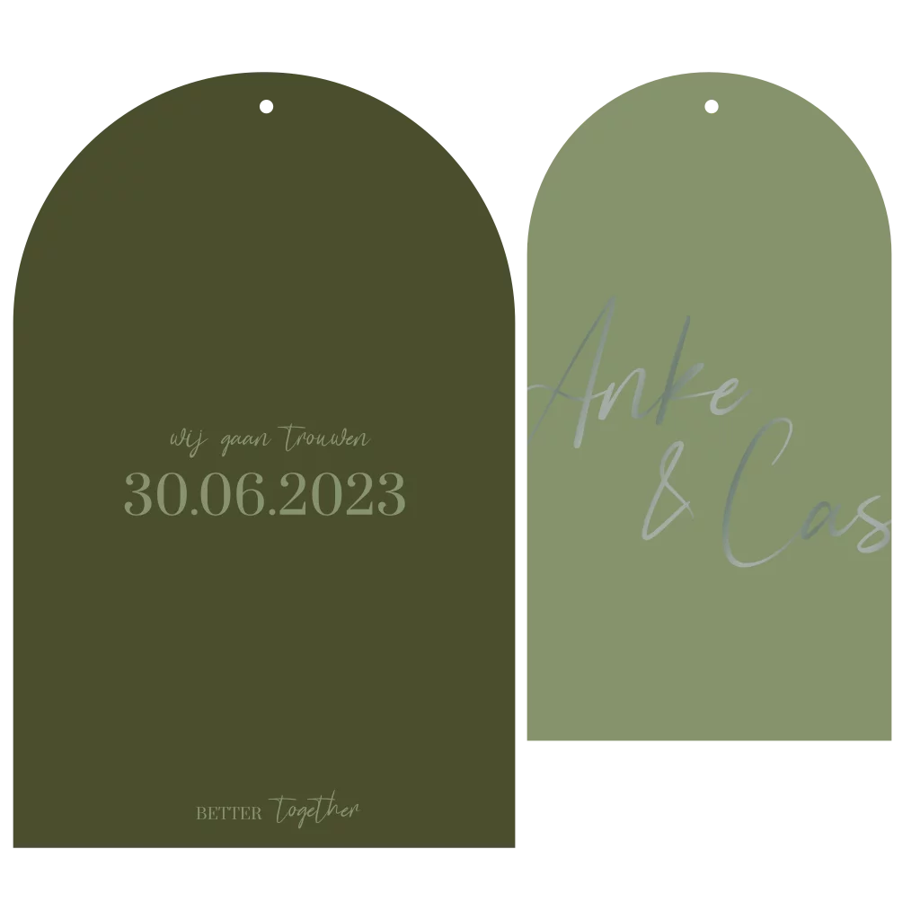 Trouwuitnodiging groene set - twee kaartjes in boogvorm