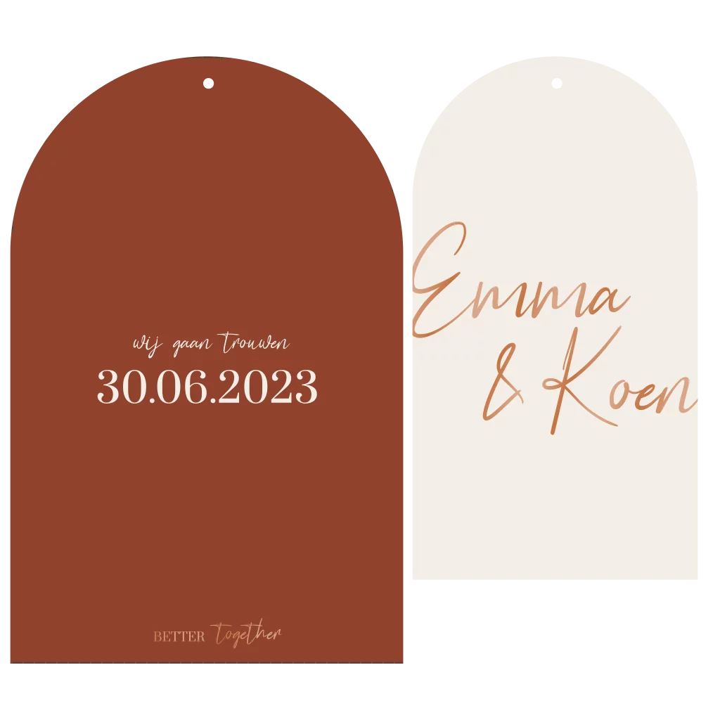 Nodig jullie gasten uit voor jullie bijzondere dag met onze stijlvolle trouwuitnodiging set. De set bevat twee losse kaartjes in natuurlijke tinten van beige en bruin, die jullie aan elkaar kunnen bevestigen met een elegante splitpen of sierlijke tassel. Personaliseer de kaartjes naar jullie smaak en voeg jullie eigen unieke tekst toe om de uitnodiging helemaal eigen te maken. Deze trouwuitnodiging set is de ideale keuze voor mensen die op zoek zijn naar een elegante en natuurlijke uitnodiging die perfect past bij hun stijl en persoonlijkheid. Laat jullie gasten weten dat jullie speciale dag eraan komt en maak deze uitnodiging de eerste stap naar een onvergetelijke trouwdag.