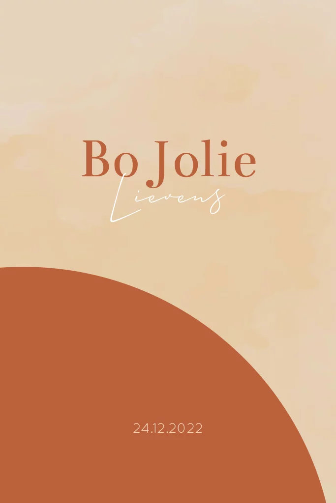Een van onze favorieten: deze beige poster met naam. Met mooie terracotta details. De achtergrond, het lettertype en de kleuren zijn ook volledig naar wens aan te passen. Heb je hulp nodig bij het ontwerpen van jouw ideale poster? Stuur gerust een berichtje! Bo Jolie