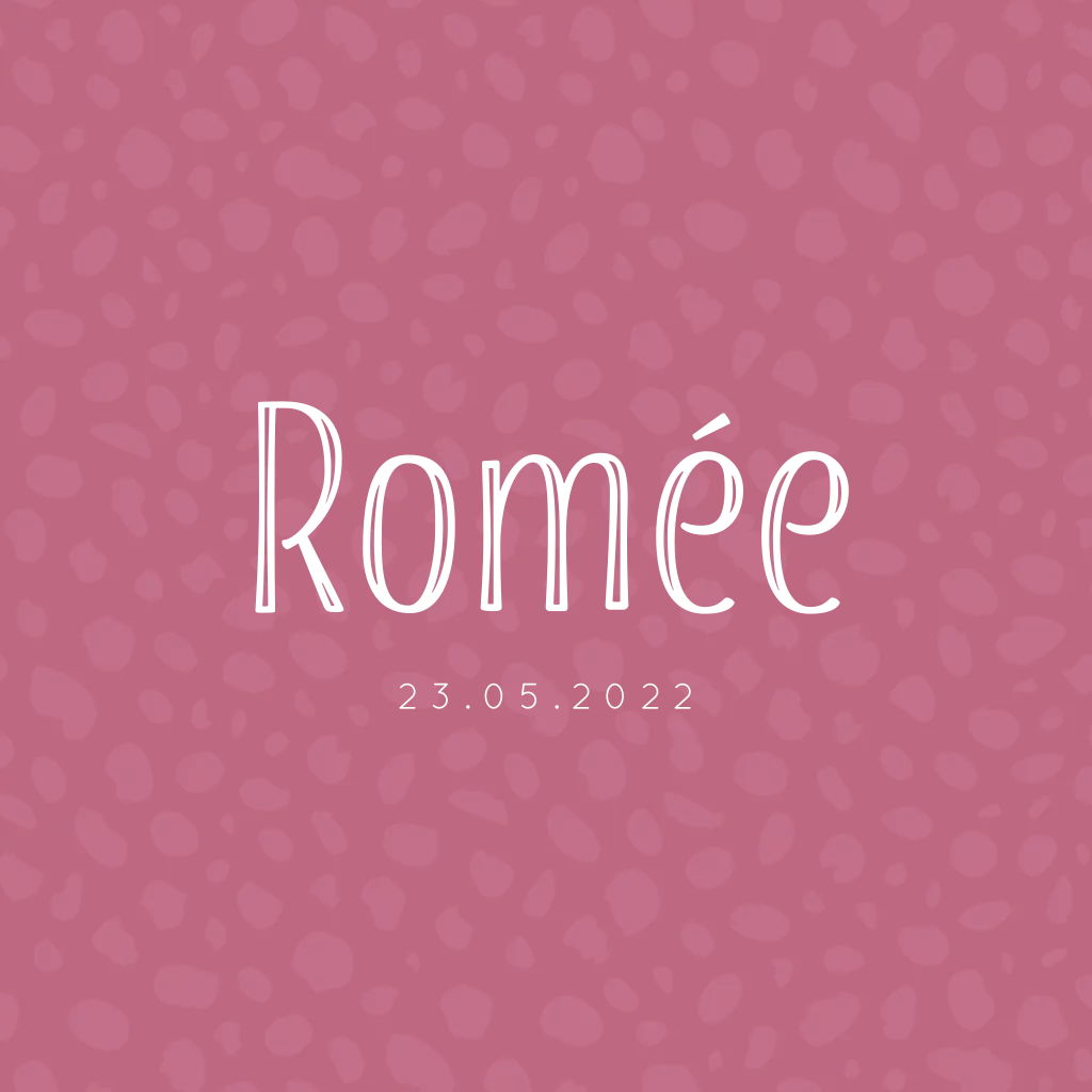 Een roze geboorteposter voor meisjes met een mooie print op de achtergrond en de naam in goudfolie. De achtergrond, het lettertype en de kleuren zijn volledig naar wens aan te passen. Heb je hulp nodig bij het ontwerpen van jouw ideale kaartje? Stuur gerust een berichtje! Romée