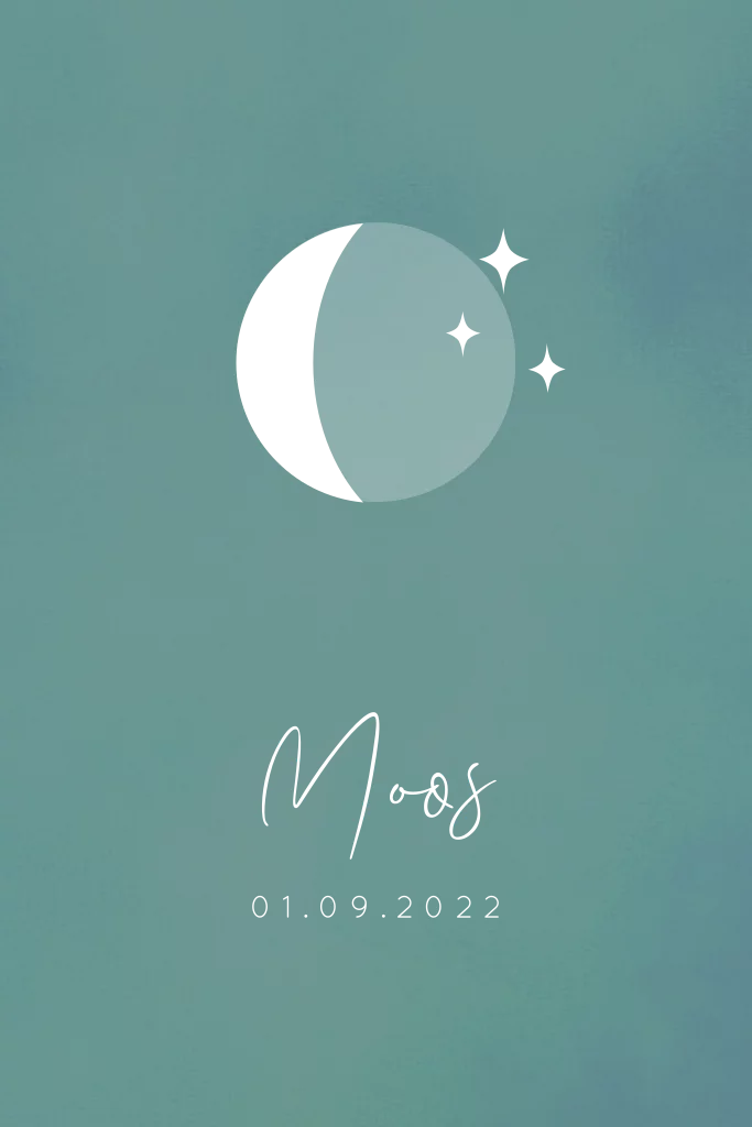 Alle verschillende maanstanden vind je in de beeldbank. De achtergrond, het lettertype en de kleuren zijn ook volledig naar wens aan te passen. Heb je hulp nodig bij het ontwerpen van jouw ideale poster? Stuur gerust een berichtje! Moos
