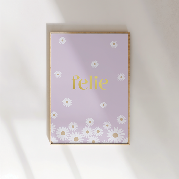 Persoonlijke Lila Poster met Bloemenregen en Naam voor de Babykamer