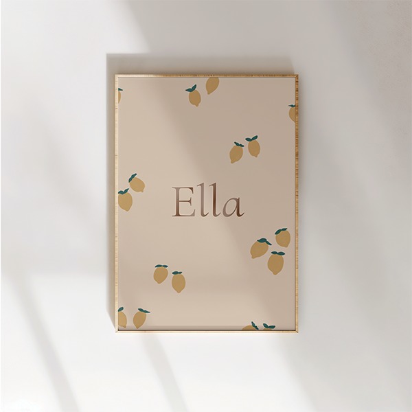 Persoonlijke Poster met Bruine Folie en Citroentjes voor de Babykamer