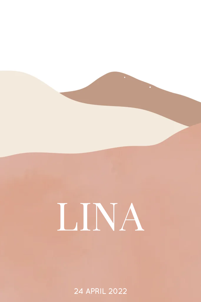 Deze hippe poster is speciaal ontworpen voor jouw kleine meisje. Een gepersonaliseerde poster met bergen en goudfolie. De achtergrond, het lettertype en de kleuren zijn volledig naar wens aan te passen. Heb je hulp nodig bij het ontwerpen van jouw ideale poster? Stuur gerust een berichtje! Lina