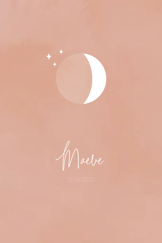 Alle verschillende maanstanden vind je in de beeldbank. De achtergrond, het lettertype en de kleuren zijn ook volledig naar wens aan te passen. Heb je hulp nodig bij het ontwerpen van jouw ideale poster? Stuur gerust een berichtje! Maeve