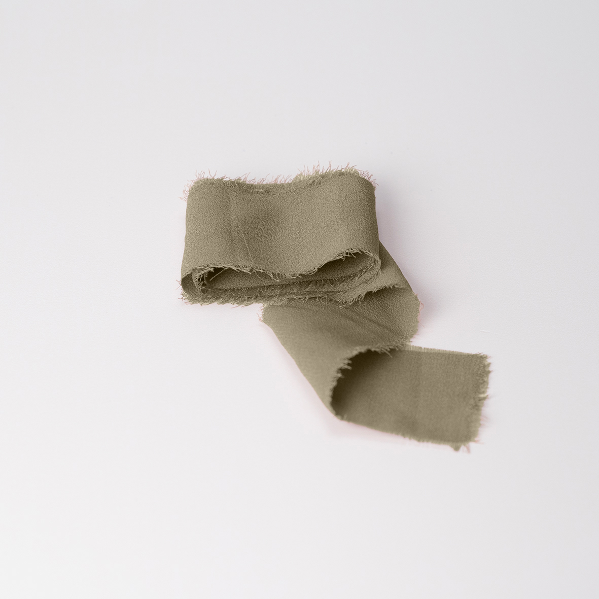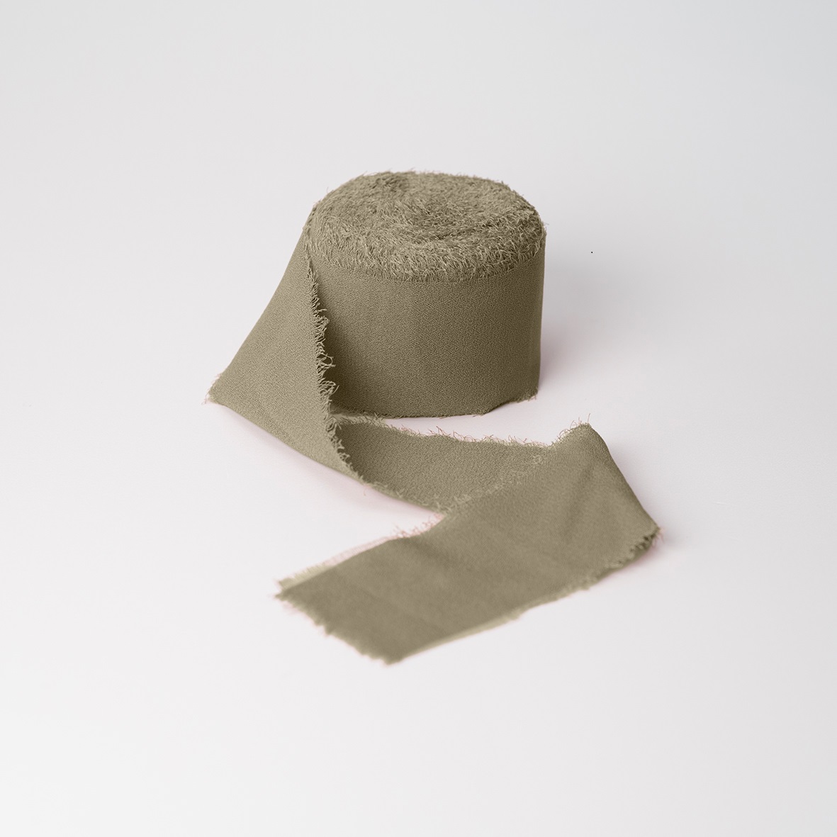Saliegroen chiffon zijden lint (20 meter). Je ontvangt 2 rollen van 10 meter. Geschikt om ca. 50 kaarten mee te versieren.