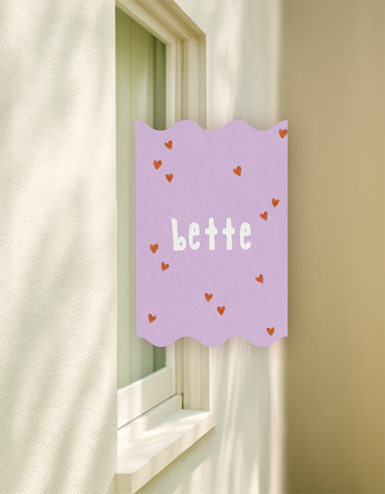 Lila dubbel raambord met golfrand en hartjes