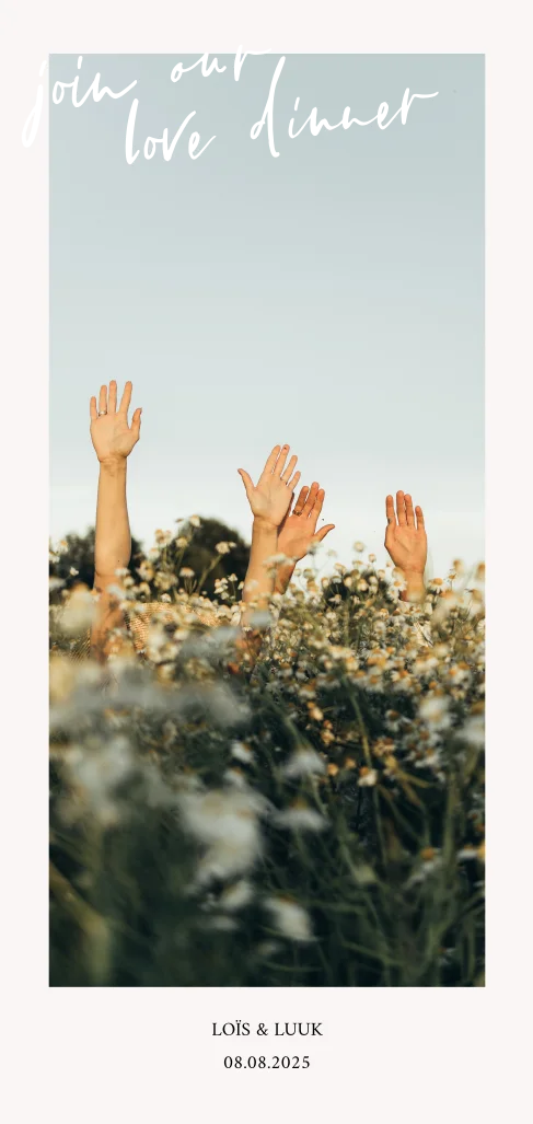 Deze prachtige menukaart voor jullie bruiloft heeft een uniek ontwerp met een persoonlijke foto en goudfolie accenten. De foto op de menukaart geeft een persoonlijke touch en maakt het extra speciaal. De goudfolie accenten geven de kaart een elegante en chique uitstraling, die perfect past bij een stijlvolle bruiloft. Door deze menukaarten te plaatsen op de tafels van jullie gasten, kunnen zij genieten van jullie heerlijke gerechten terwijl zij worden omringd door jullie persoonlijke stijl. De menukaart kan worden gepersonaliseerd met jullie namen, de trouwdatum en de gerechten die worden geserveerd, waardoor het een praktisch item is voor jullie gasten. Het is de perfecte manier om jullie gasten te laten weten wat zij kunnen verwachten tijdens het diner en hen te laten zien dat jullie aandacht hebben besteed aan elk detail. De combinatie van foto en goudfolie maakt deze menukaart extra bijzonder en zal een blijvende indruk achterlaten bij jullie gasten.