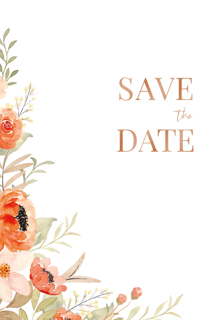 Save the date met oranje bloemenrand
