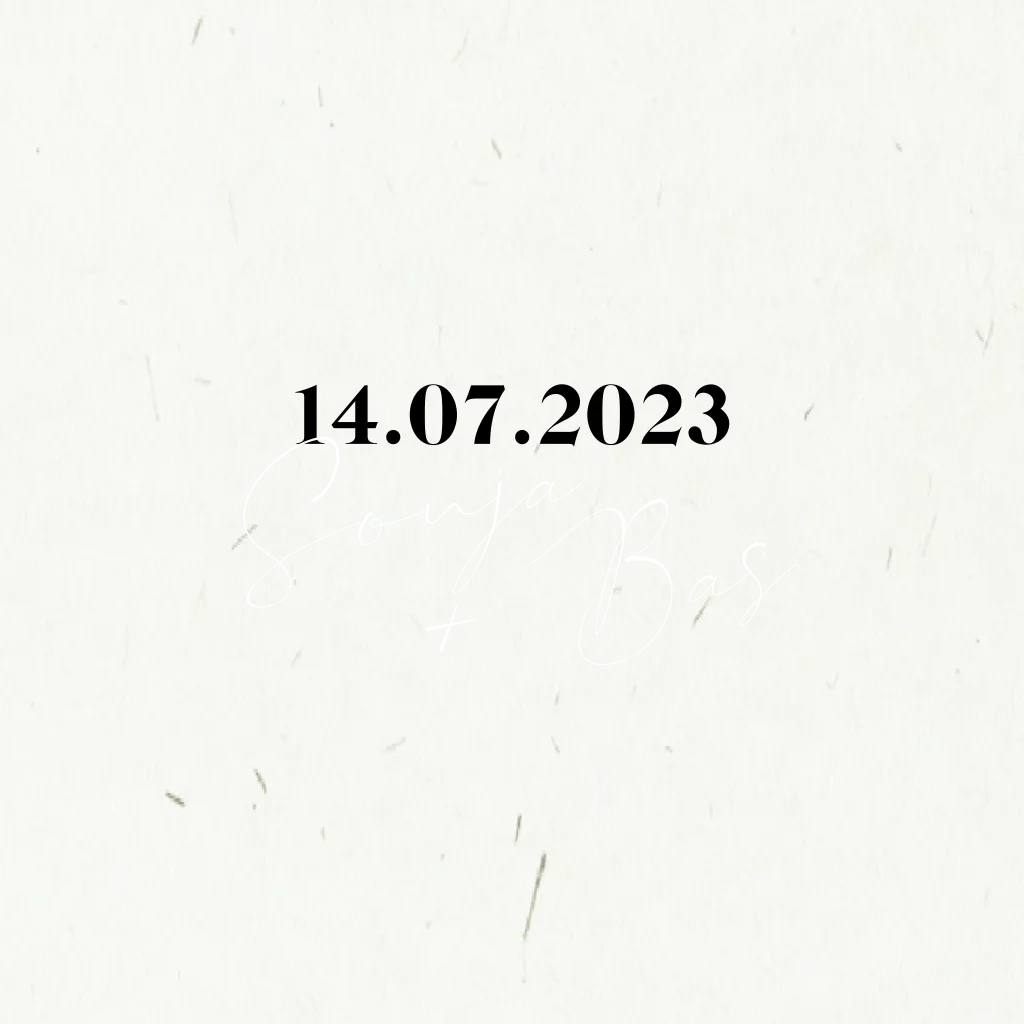 Deze moderne uitnodiging met papierstructuur past perfect bij jullie wit met zwarte save the date kaart. In de online editor passen jullie de tekst, lettertypes en kleuren helemaal naar wens aan. Kies zelf het papier uit onze brede selectie.
